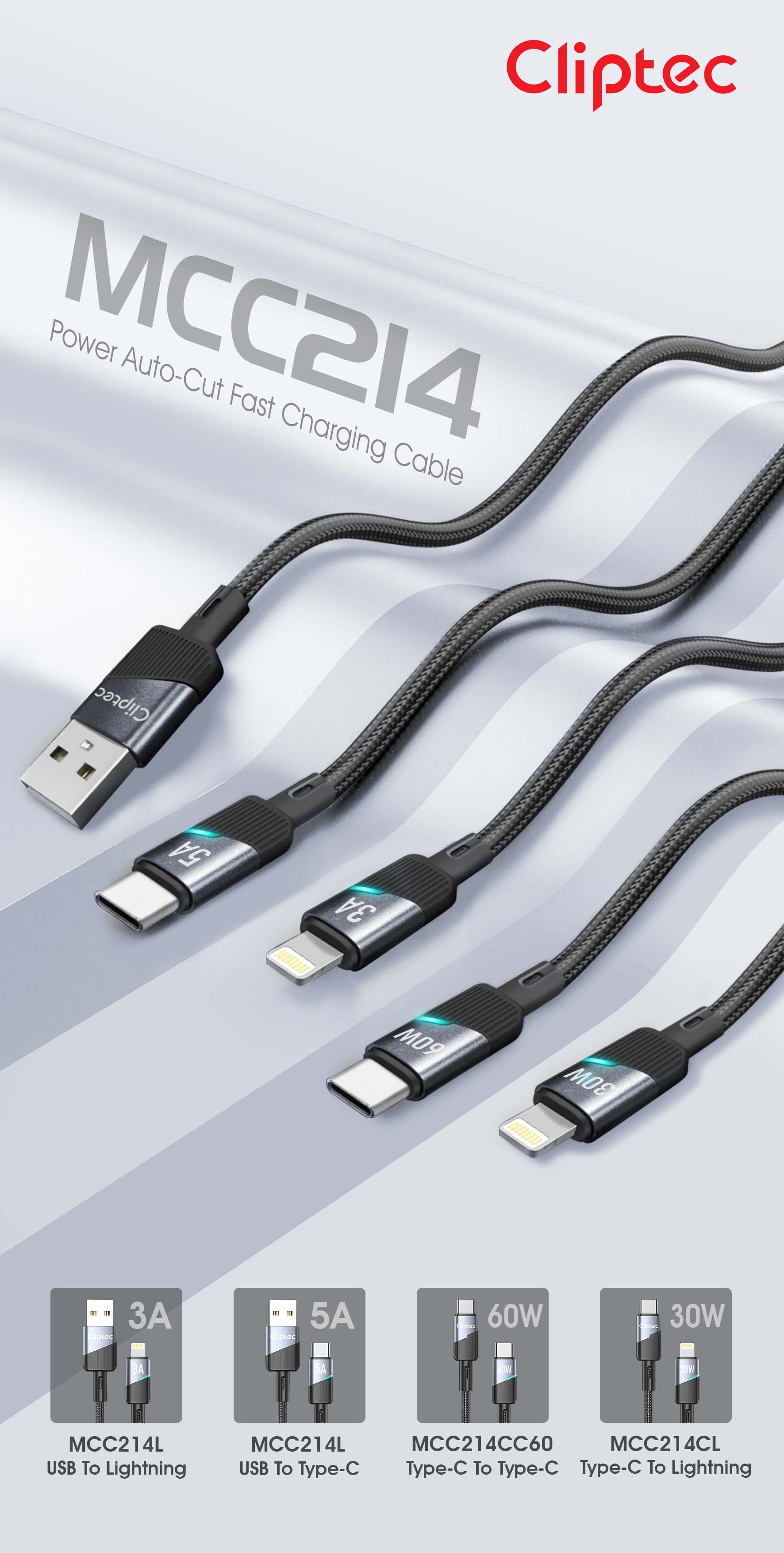 The Techno Series MCC214CC60 Type C to Type C power Auto-cut fast charging cable adopts purity copper wire, which significantly reduces the transmission loss. Depending on the performance of the connected device, the cable supports up to 60W power charge. Built in with intelligent IC to have a automatic power cut function is to avoid overcharging to damage your phone, protect the phone from the inside out and external battery life.